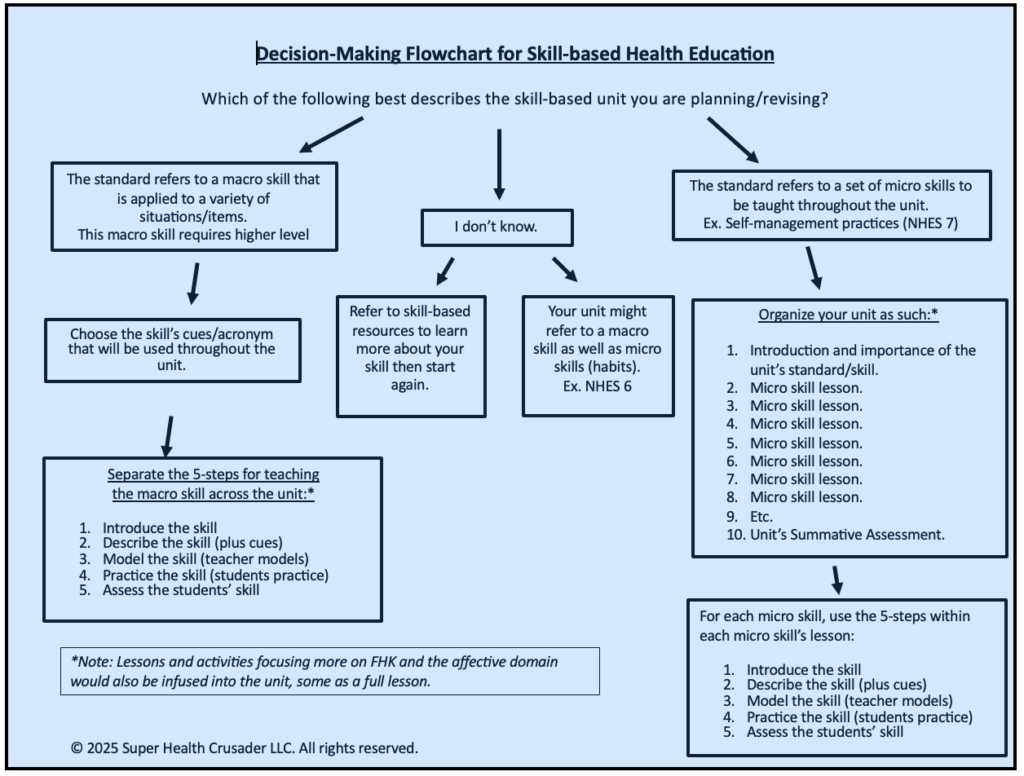 Therefore, she created the Decision-Making Flowchart for Skill-based Health Education to help current and future health educators plan, instruct, and assess PreK-12 School Health Education: